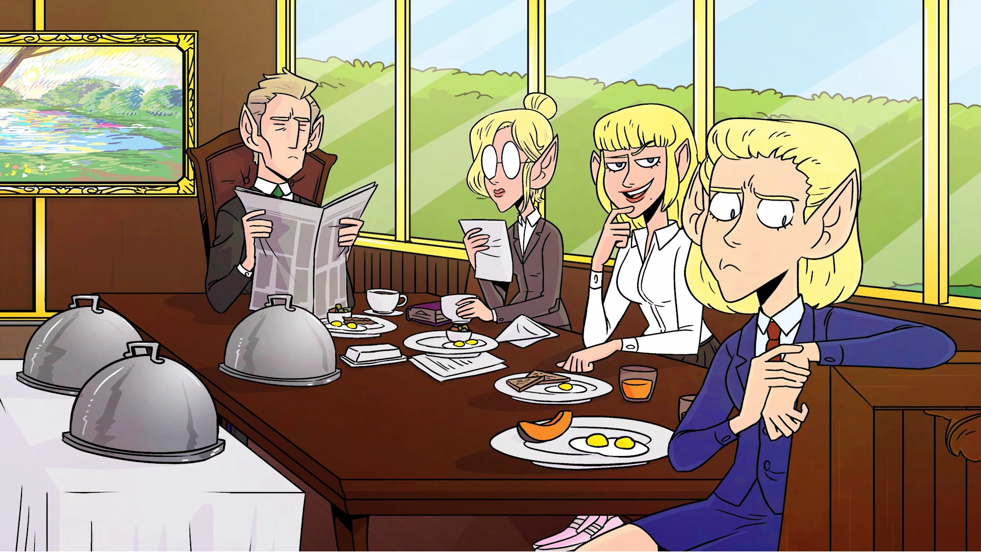 Adaine's introductory graphic, showcasing the Abernant family having breakfast in their breakfast nook.