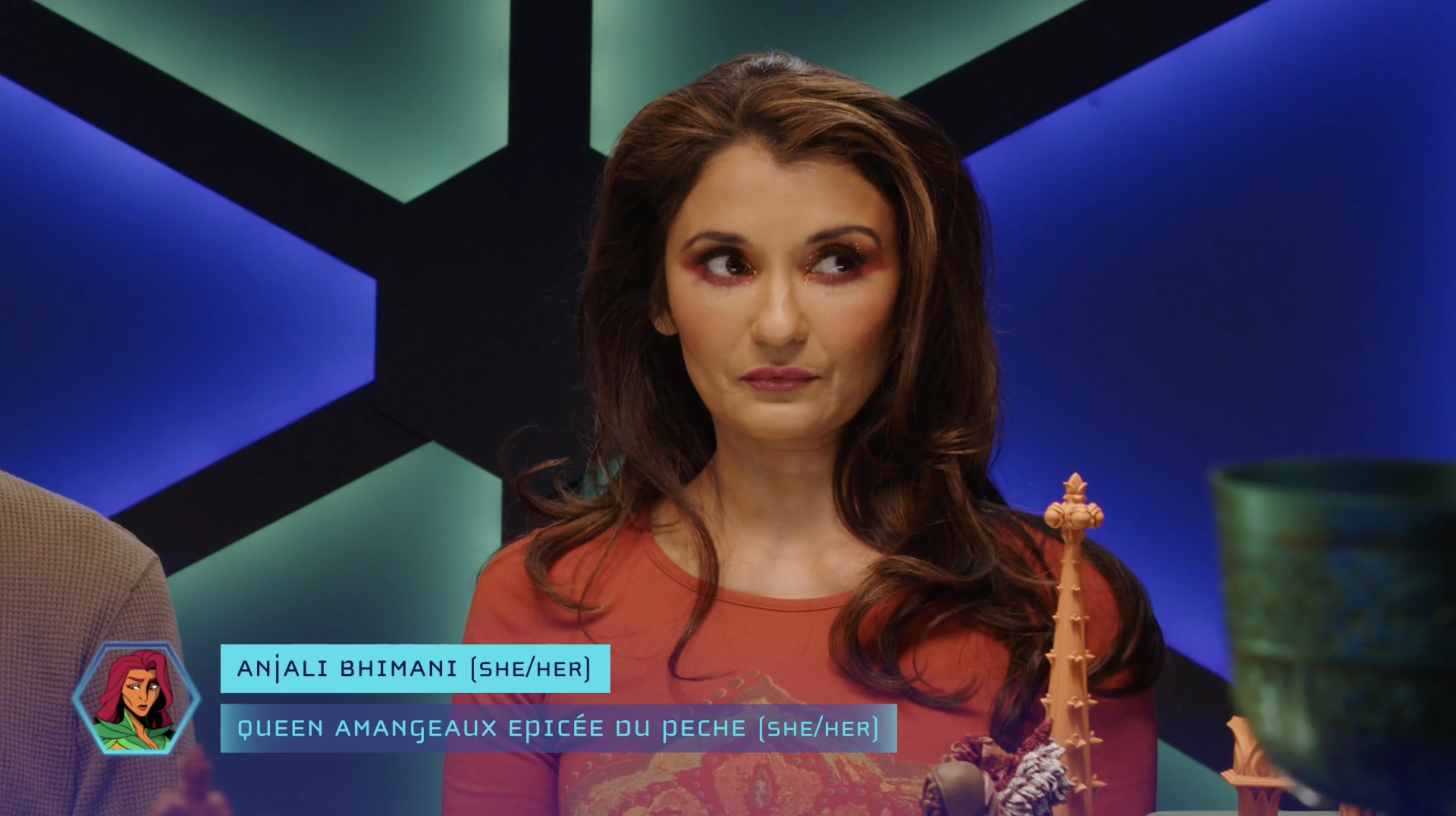 Anjali is also a main player of EffinFunny's DesiQuest. DMed by Jasmine Bhullar, DesiQuest is a D&D real-play show that focuses around Indian mythology. She plays the druid, Sitara, alongside Rekha Shankar, Omar Najam, and Sandeep Parikh.