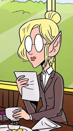 Arianwen is first introduced as the whole Abernant family sits around the breakfast table in their home before Adaine's first day of freshman year at Aguefort Adventuring Academy. She is looking over her curriculum for the day.