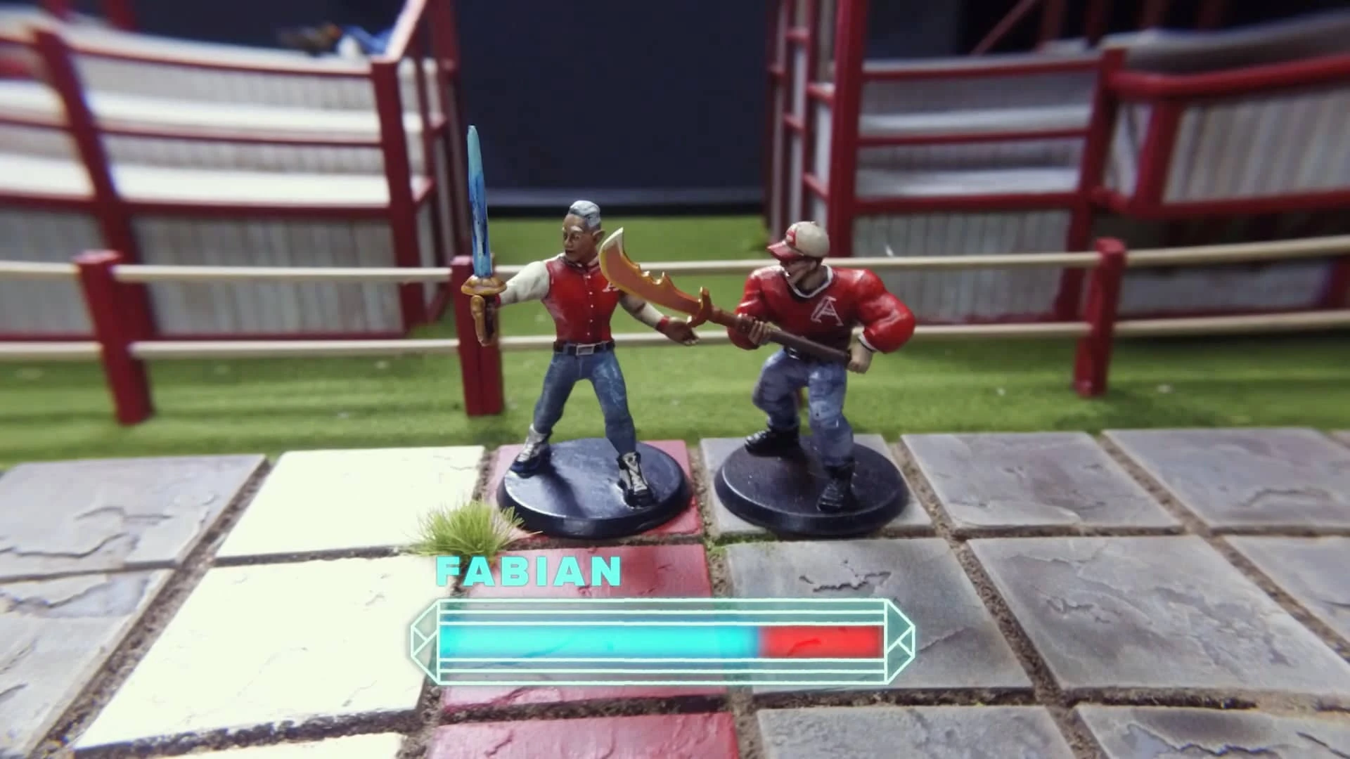 Fabian Action Surges to run toward Riz. He grabs "The Ball" and the ball before sprinting past Coach Daybreak. A skeleton guarding the chest at the end of the field attempts to attack Fabian, but he resists the attack. Fabian slam-dunks Riz and the orb into the chest, but Riz is able to hop out of the chest with Adaine's divination roll. Fabian turns to Daybreak, holds up both middle fingers, and shouts, "What's good?! Fuck! You!"