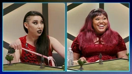 On their way out, Jammer clocks that The Trio are struggling with the potion, and while they will get a solid B, the Misfits receive an A-. Jammer rubs it in, offering to help the three, and Dream rubs in that clearly their inherited skills and privilege have not helped them, and Evan adds that the Misfits actually understand how things work, not just going off of repetition. Digsby comments that all he hears when Evan talks is snake sounds, because he’s an evil wizard who should’ve gone to Aqrabus. Jammer excuses them, and Evan laments that he tried to trash talk, but only got his feelings hurt, but Jammer assures him that it’s alright and that he did well.