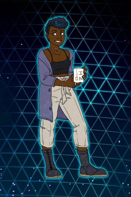 Esther is described as a very cool wizard in her 20's, with an undercut, and lots of jewelry. Her style is very "wizard-chic", and she fights with a magical silver baseball bat.
