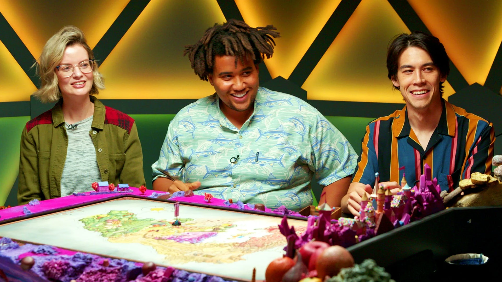 As the Taste Buds finally arrive in Comida, they meet a whole host of new characters, from old friends to important political figures. Amethar catches up with some war buddies, Manta Ray Jack and Sir Morris Brie, while Ruby and Liam meet Captain Annabelle Cheddar, the previous heir to the Dairy Island throne. Sitting there instead is Duchess Primsy Coldbottle, who Theobald keeps an eye on as she dines with Lord Stilton Curdeau. Jet meets up with Thad for the first time in ten years, and Lapin heads off with the Pontifex Belizabeth Brassica and several other members of the church: Archbishop Oliver Onionpatch, Sir Keradin Deeproot, and Archbishop Fettucina Alfredi. At the end of the day's festivities, they sign up for the events they hope to compete in the next day.