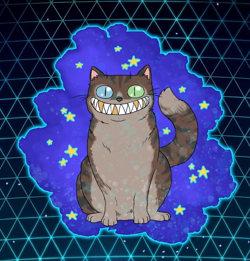 La Gran Gata is a dark brown and light brown cat with a mischievous smile with 4 golden teeth and heterochromatic eyes. She exudes a mystical, starry blue aura and can transform into a whirling torrent of stars.