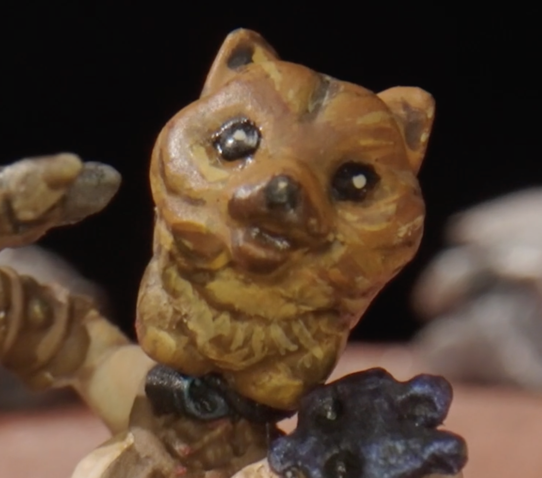 Adaine is the only person who can actually see Moggy, as to everyone else he is invisible. Adaine sees him as a perfectly round Pomeranian.