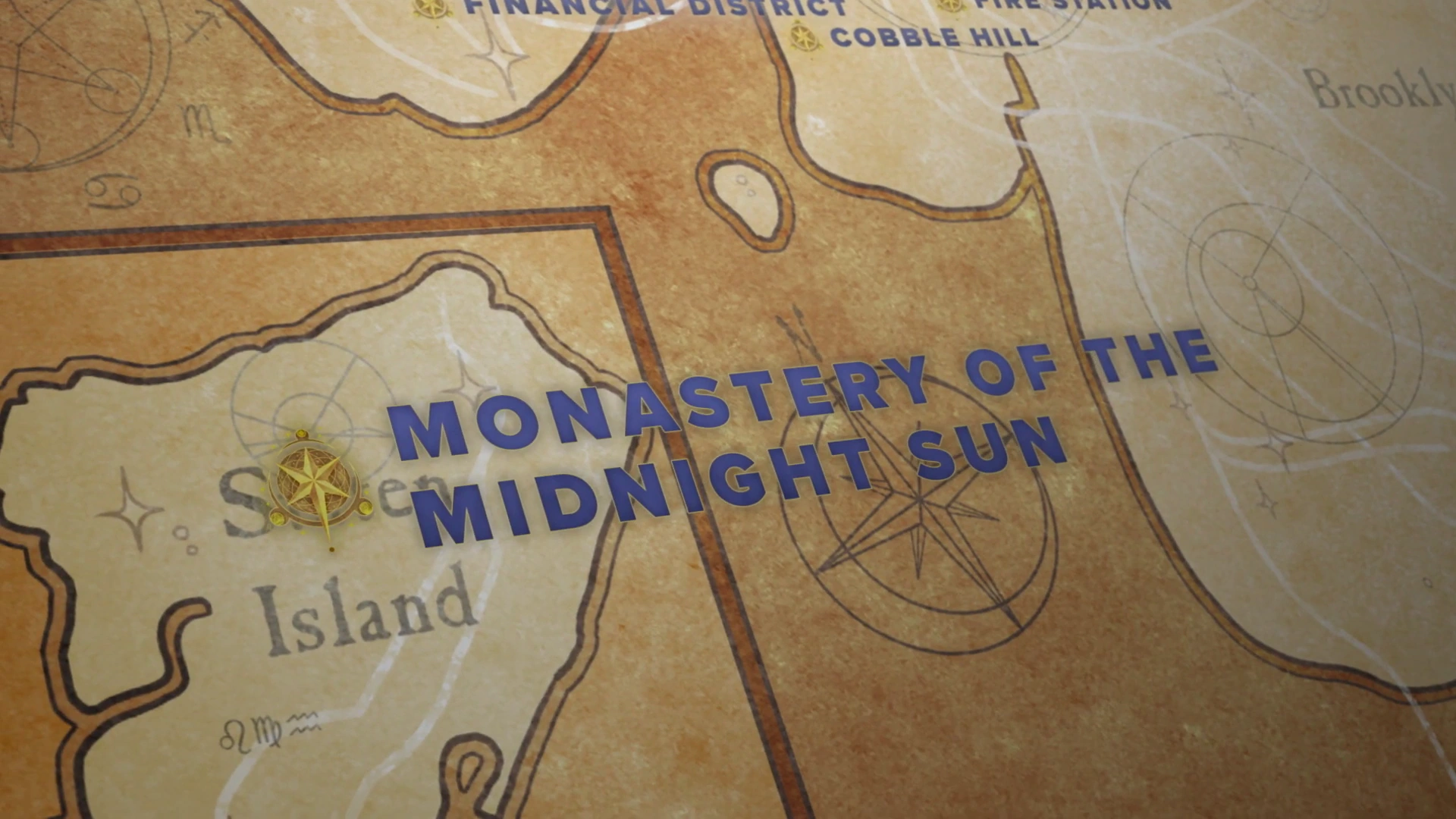It is a huge building made of what looks like gum-covered sidewalk, where the monks are able to walk on the walls and ceiling. In the Monastery there is an incredible yin and yang symbol with a golden half specked with grime and soot, and a purple half made of star magic, which represents the dreaming and the waking world. It is located far above Staten Island and can be entered through a fire escape on the side of a building just across from Spaghetti's Bakery, that extends up into the clouds for people who have been inducted into the Unsleeping City. The Monastery itself is too high up to be considered to be on Staten Island because of zoning laws.