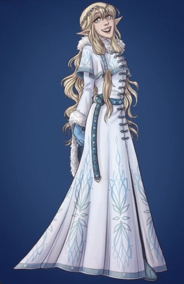 Princess Naradriel of Fallinel is an elven princess and Tracker's new ex-girlfriend. She comes from a family of moon goddess clerics within the high elf culture of Fallinel, and her father is one of the elves on the Court of Stars.