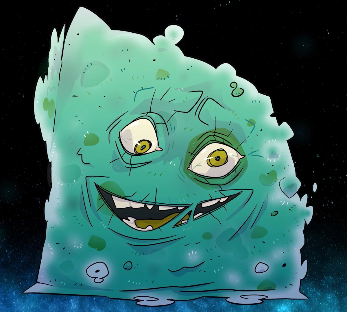 Stimey is an unsightly collection of greenish-brown mold that sits in the far corner of Jack Brakkow's house, across from where his bed sits. His eyes are a weird yellow that aren't as firm as human eyeballs and wiggle like a soft boiled egg. As with most mold, the visible parts of Stimey are only a small portion of his true size. Stimey extends all throughout Jack's home.