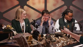 "We're all back in the library for this, the thrilling conclusion of "Dimension 20: Neverafter!" [...] The quietest battle ever. Last we left off, our Intrepid Heroes were deep within the Canonade, the ink, the true ink of story swirling overhead as the architect of the ink's purpose, Snow White, was struck down by an arrow from Sleeping Beauty. Right now, the Princess Rapunzel and The Beast have been defeated, Snow White is no more, Cinderella is grappling in the air with the ancient witch, Baba Yaga, as the Princess Elody and Princess Mira have, for the moment, joined your side, Scheherazade is at zero hit points, but stable here, with her book in Cinderella's hands.