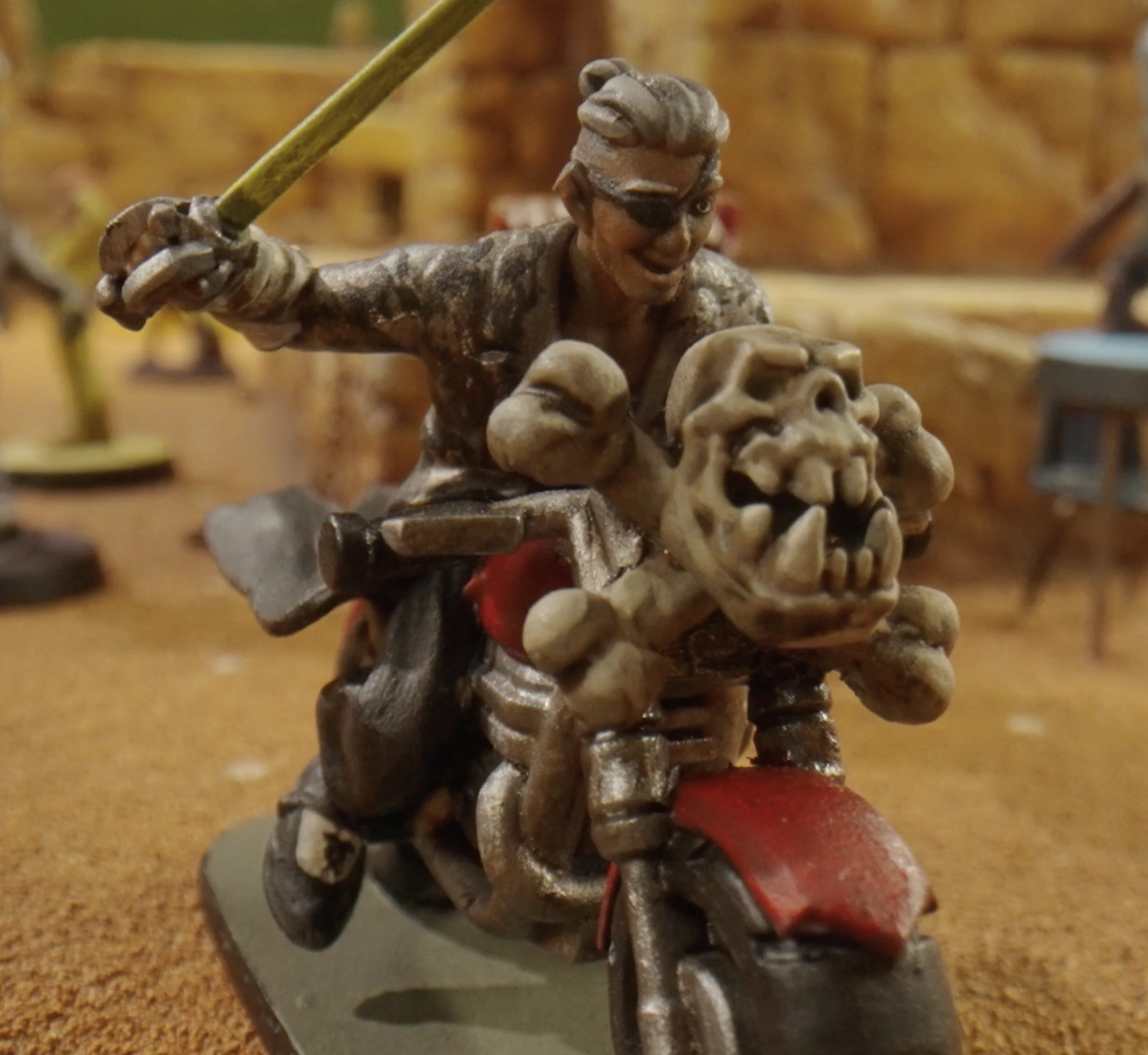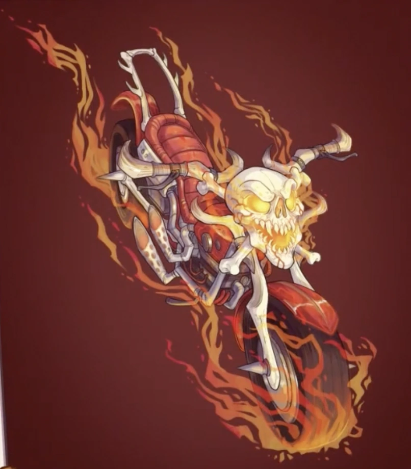 The being bound to the Hangman also gives the bike a personality. It has been completely dedicated to Fabian since the moment he bested it's previous master, Johnny Spells, in combat. It often compliments Fabian on his brilliance and prowess as a fighter, though its hopes and goals for the two of them may be more extreme and nefarious than Fabian really wants. It also acts as Fabian's unofficial "wing-man," and often tries to convince him to let pretty girls like Adaine Abernant and Fig Faeth ride with him.