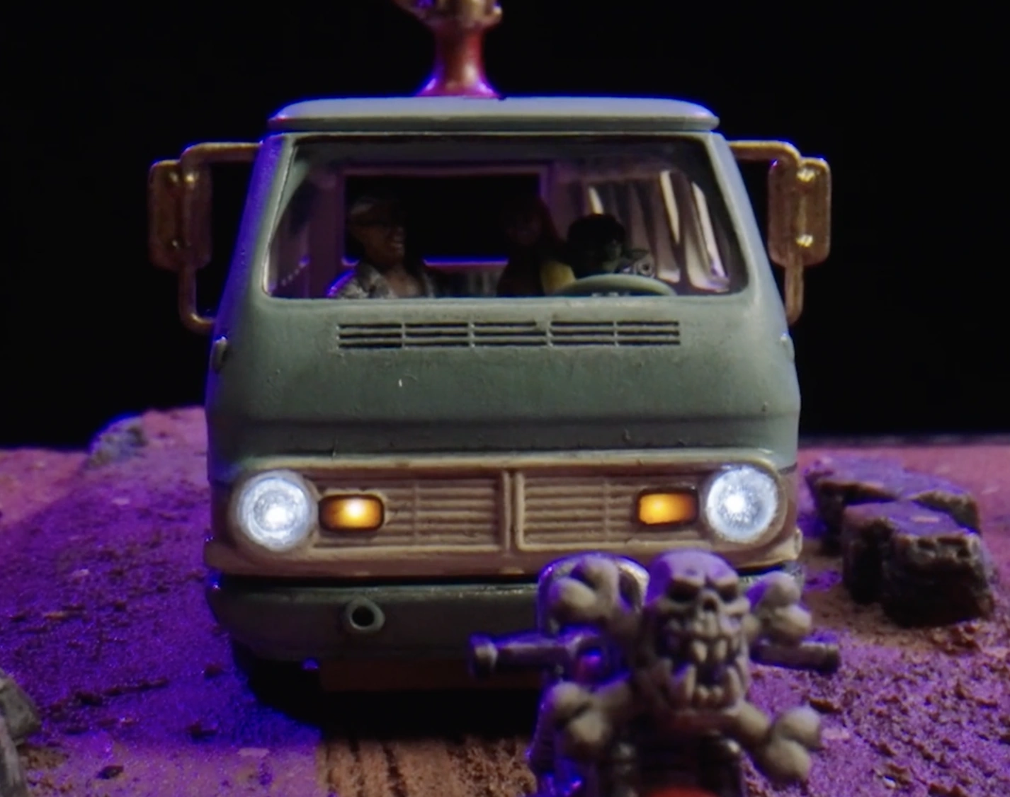 The van itself is a rusty, old, clunker van, but it works. There's a secret panel inside that can be opened by pushing a specific button. There are plans for the Thistlespring's satellite in the glove compartment. The van can also turn into a boat, which is the inspiration for Gorgug's song, "My Van is a Boat, and My Boat is a Van".