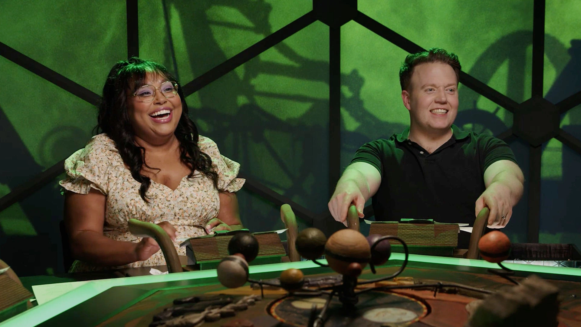 Suddenly, everyone feels a massive, lumbering bear rush past them, and Evan willingly leaves himself vulnerable, getting bowled over as he is gored by the antlers of Tadershecourt. Bleeding from his left pectoral, Jammer approaches him and asks what happened, at the same time, K’s shadow is having an egregious lustful reaction to what they’ve just watched. Evan feels comfortable, awash in green magic, and tastes the blood from his chest, realizing that it doesn’t taste like his blood, which is usually poisonous, but that it tastes like real blood. Evan explains that the Hellbenders on Galamanis seemed to be mindless, they had never met the avatar of Seegenpelater, Weugan was aggressive, and The Qohlye clearly had ulterior motives, but that Tadershecourt is the first one that had a conversation with them, and tried to help them. He reasons that the road ahead is going to require a lot of smarts, sacrifice, and dedication, and a pragmatism that the prior civilizations didn’t have. While he is terrified of throwing out the good things in an attempt to remove the bad, however the previous wizards seemed to find things that were true about magic, then corrupted them. He tells his friends that he just performed a ritual, asking Tad if everything about the symbols and his representation were fabricated, or if they represented something eternal, and thus be described in the next iteration, and his blood tasting real, means that Tad would like to be described as real. Sam then realizes that there were four founders of Gowpenny, and that there are four of them here now. Evan leaps on that, saying that admission to the next magical academy should be general population, without houses. Jammer declines to talk about infrastructure yet, but Evan insists that if they don’t have these conversations early, that’s how “evil kid house” happens.