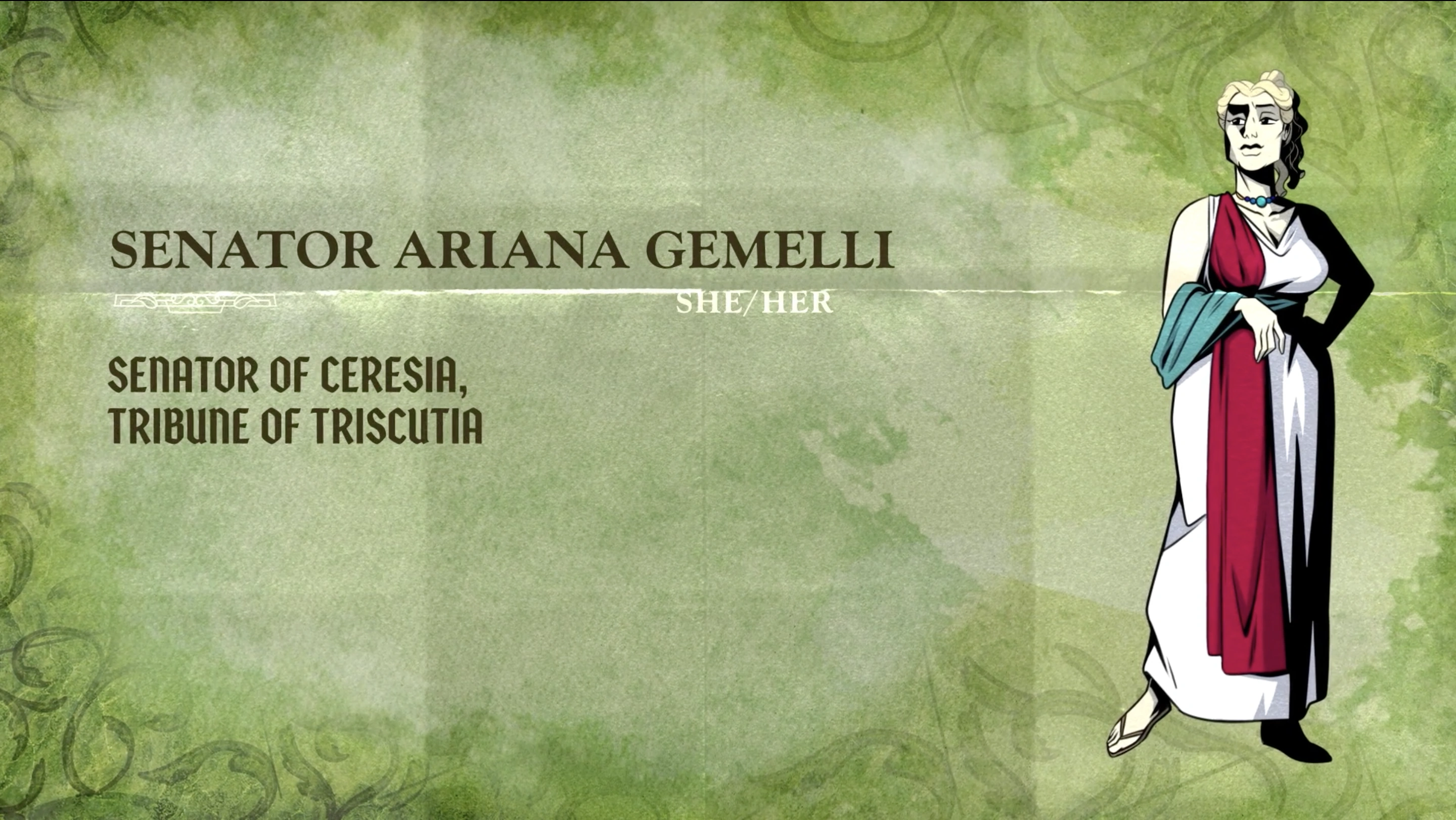 Senator Ariana Gemelli Pasta (Gemelli) - Alive Member of the Ceresian Senate. |