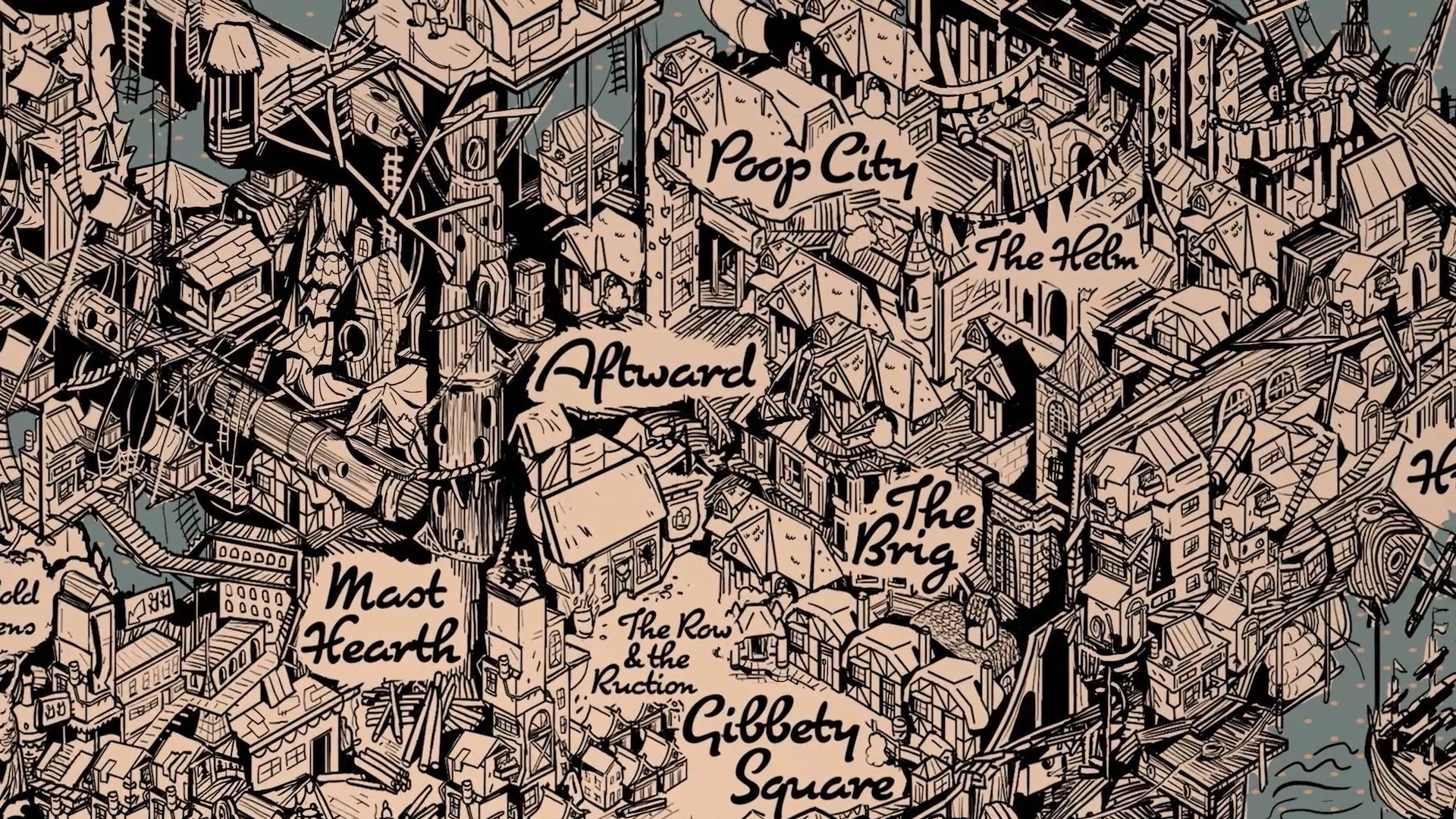 The Row and the Ruction is an enormous warehouse in Aftward where political decisions are made in Leviathan. Inside is a constant brawl.