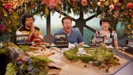 Squak and Chirp decide that it would be off-putting for them to aim to retrieve the Crystal Heart due to their already very high reputations at the Bloom, and deem that it would be better to direct their attentions within the Hedge Maze to planting other seeds. The cousins notice that two faces appear to disproportionately light up at the news of the Crystal Heart being the prize at the centre of the Hedge Maze: Prince Apollo of the Court of Wonder, and Princess Suntar of the Unseelie, the older sister of Andhera. Squak asks if they will be able to use their powers to fly during the race through the Hedge Maze, and the Wavemaster demonstrates that they will not be able to by summoning a bird made out of water which, as it flies over the Hedge Maze, is entangled and ripped apart by vines. The Wavmemaster tells the gathered Fey that they must enter the Hedge Maze alone; they can attempt to find their friends inside, but the hedge seeks intentions and will help the participants down the path of what they truly desire. Wuvvy appears next to Rue and says that they will take charge of the rest of the required preparations if Rue wants to participate in the game at the Hedge Maze and revel in the moment of appearing in public in their true form. Rue accepts. Gwyndolin asks Rue if they could find her within the Hedge Maze as they have something to talk to them about that they cannot talk about in public. Rue promises to do so.
